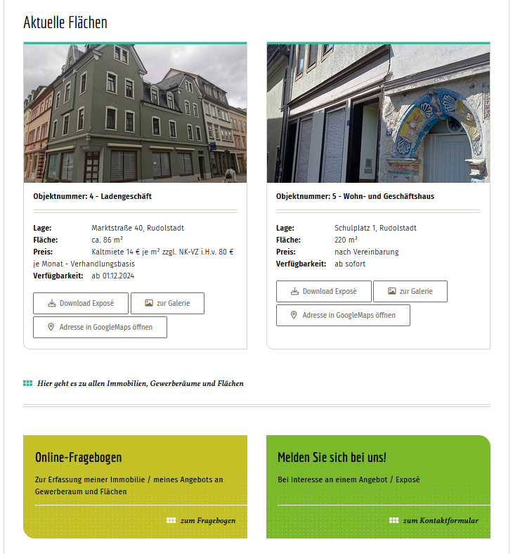 Es besteht nun anbieterunabhängig eine Übersicht zu Flächenpotentialen in der Rudolstädter Innenstadt. Bisher nicht aktiv beworbene Flächen konnten größtenteils durch Sensibilisierung der Eigentümer mit aufgenommen werden. Leerstand wurde verringert.